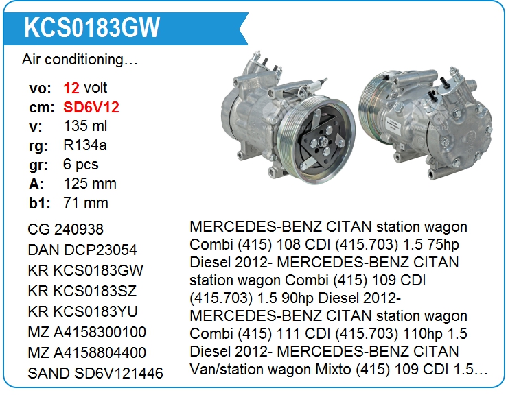 KRAUF | KCS0183GW | Air conditioning compressor | MSK | 1 | on stock | 306,61 EUR | |