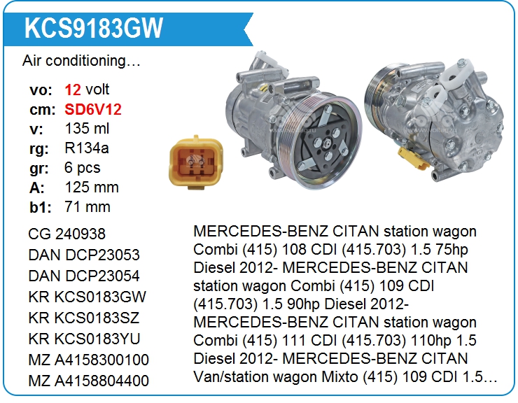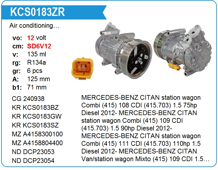 KRAUF | KCS0183BZ | Air conditioning compressor | MSK | 1 | on stock | 297,32 EUR | |