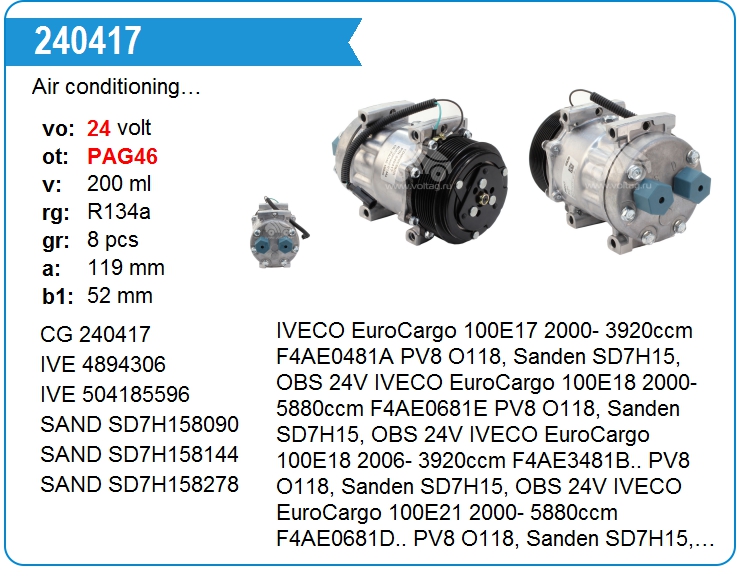 Cargo | 240417 | Компрессор кондиционера | out of stock | call | |||