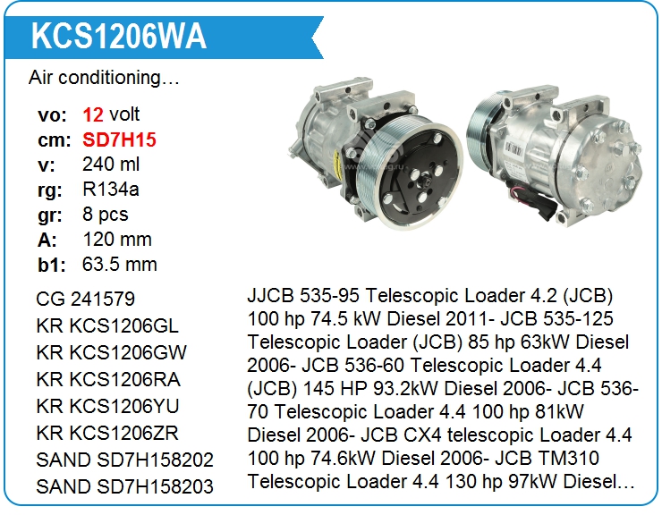 KRAUF | KCS1206GW | Air conditioning compressor | MSK | 1 | on stock | 278,74 EUR | |