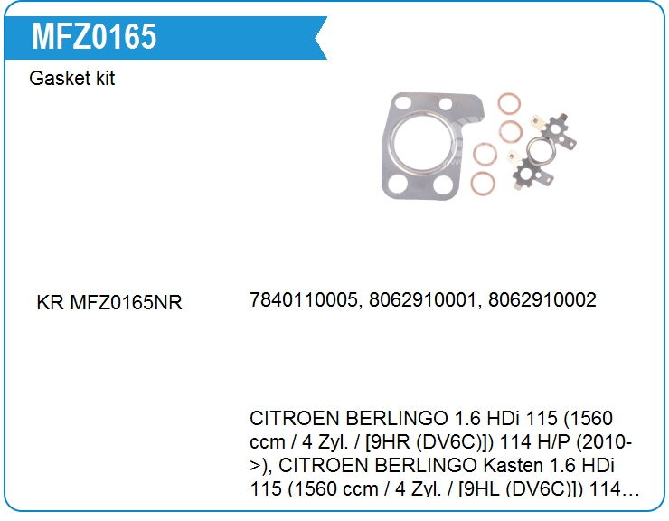 | KRAUF | MFZ0165BE | Комплект прокладок турбокомпрессора | out of stock | call |