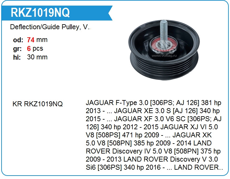 Deflection/Guide Pulley, V-ribbed belt RKZ1019