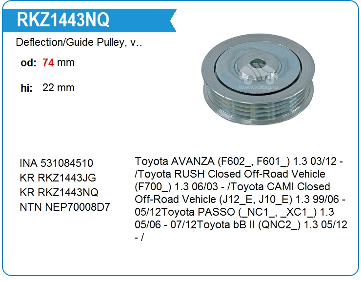 Deflection/Guide Pulley, v-ribbed belt RKZ1443