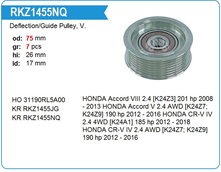 Deflection/Guide Pulley, V-ribbed belt RKZ1455
