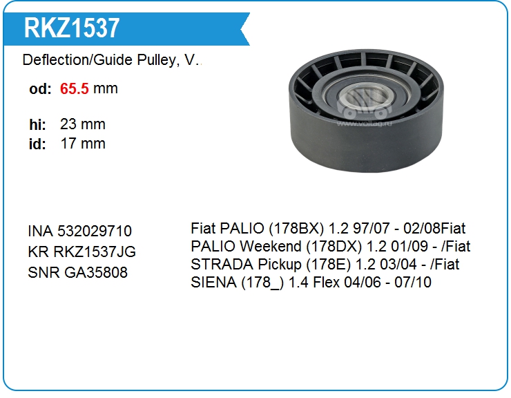 Deflection/Guide Pulley, V-ribbed belt RKZ1537