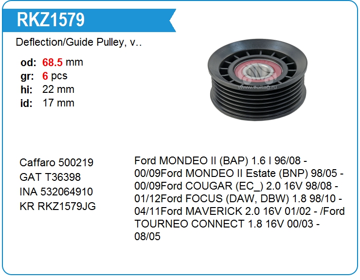 Deflection/Guide Pulley, v-ribbed belt RKZ1579
