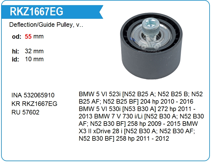 Deflection/Guide Pulley, v-ribbed belt RKZ1667