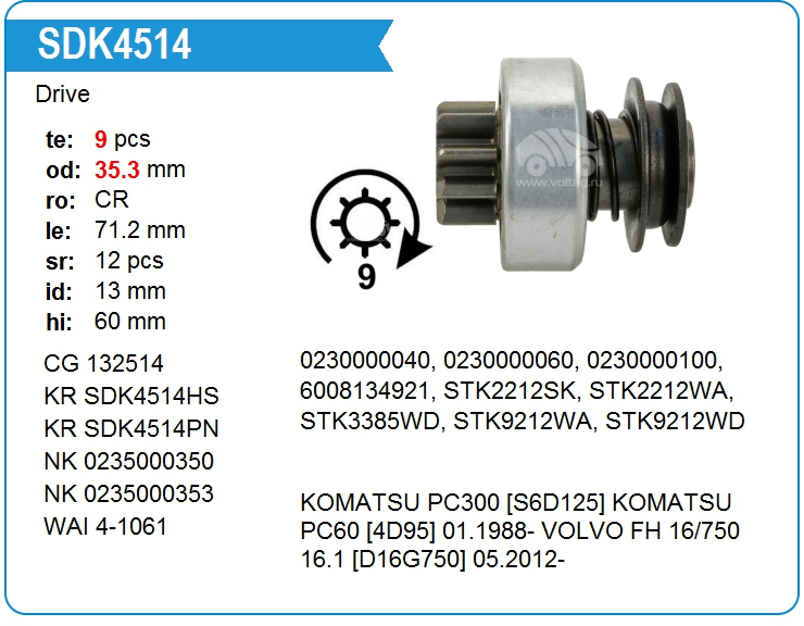 | KRAUF | SDK4514PN | Бендикс стартера | out of stock | call | |||