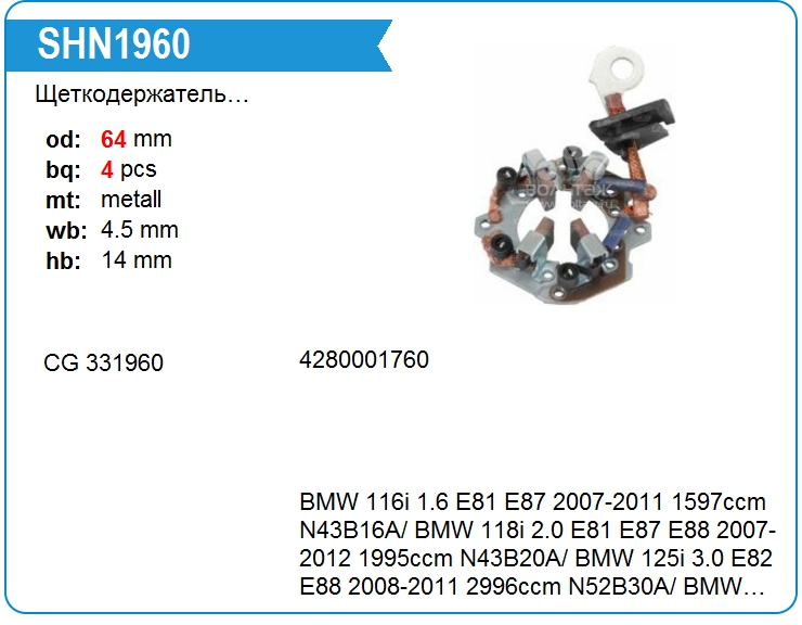 | ZAUFER | 320N10064Z | Щеткодержатель стартера | out of stock | * call | |||