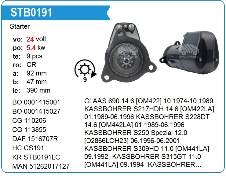 | Motorherz | STB0191WA | Starter | MSK | 1 | on stock | 510,79 EUR | |