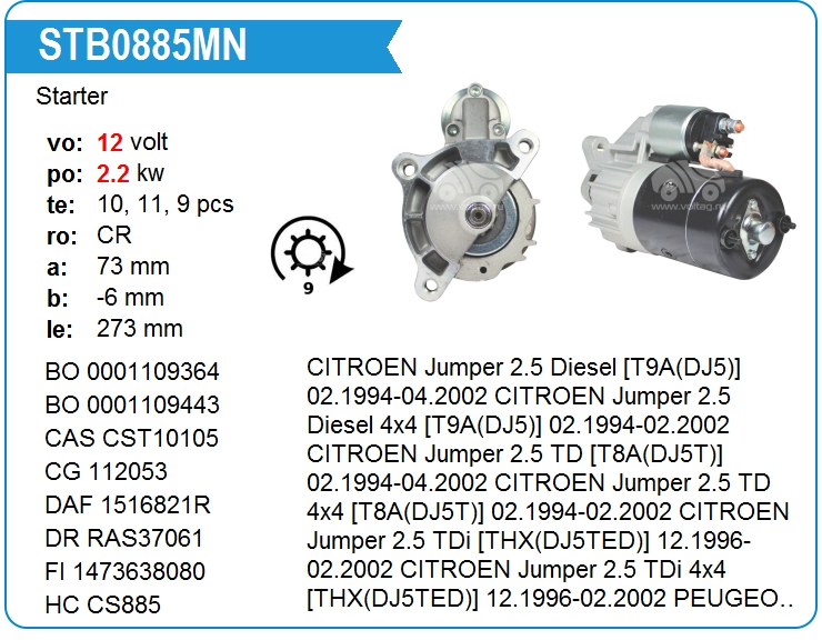 | Motorherz | STB7885WA | Starter 11 teeth | MSK | 1 | on stock | 154,20 EUR | |