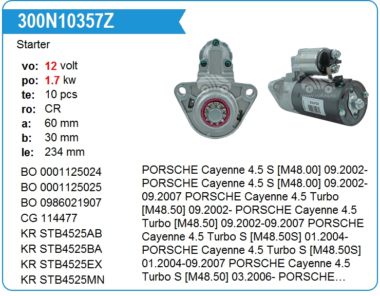 ZAUFER | 300N10357Z | Starter | MSK | 1 | on stock | * 238,48 EUR |