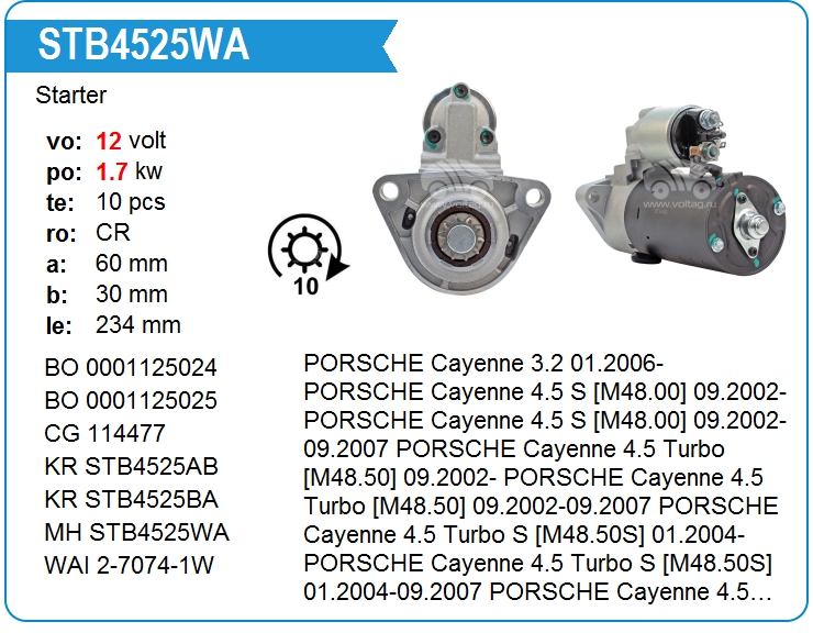 Motorherz | STB4525WA | Starter | MSK | 1 | on stock | 167,24 EUR | |