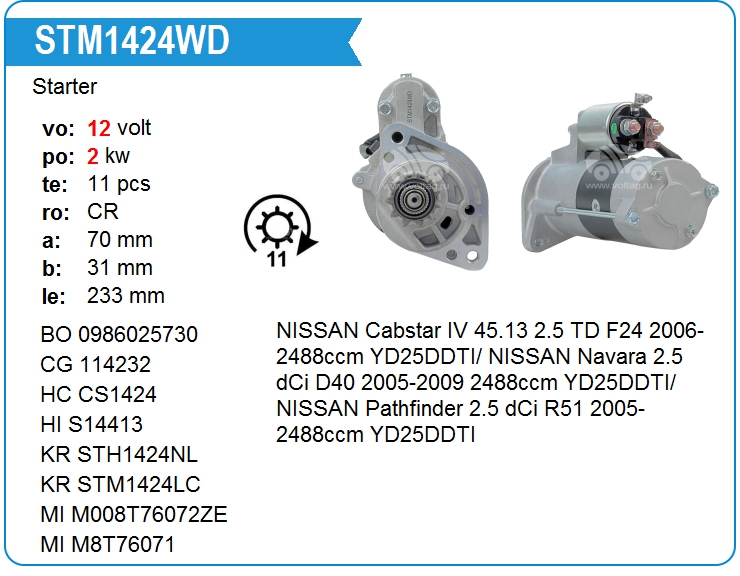 | Motorherz | STM1424WA | Starter | MSK | 1 | on stock | 153,35 EUR | |