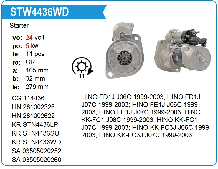 | Motorherz | STN4436WA | Starter DENSO type | MSK | 1 | on stock | 182,70 EUR | |